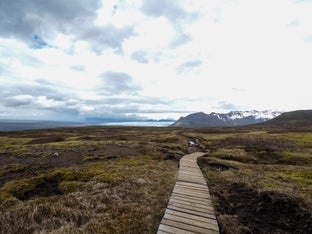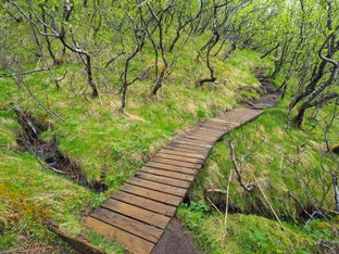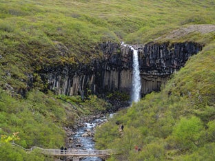 In dit prachtige nationaal park kun je mooie wandelingen maken. De meeste touristen nemen de (kortere) wandeling, die direct naar de waterval Svartifoss leidt. Heb je meer tijd dan zou ik een omweg maken, waarbij je prachtig uitzicht hebt op de gletsjer. Ik zal deze wandeling beschrijven, via bijschrift bij de foto's (met de muis erover gaan). In totaal waren wij 4 uur onderweg. (incl. pauzes, fotomomenten etc.)